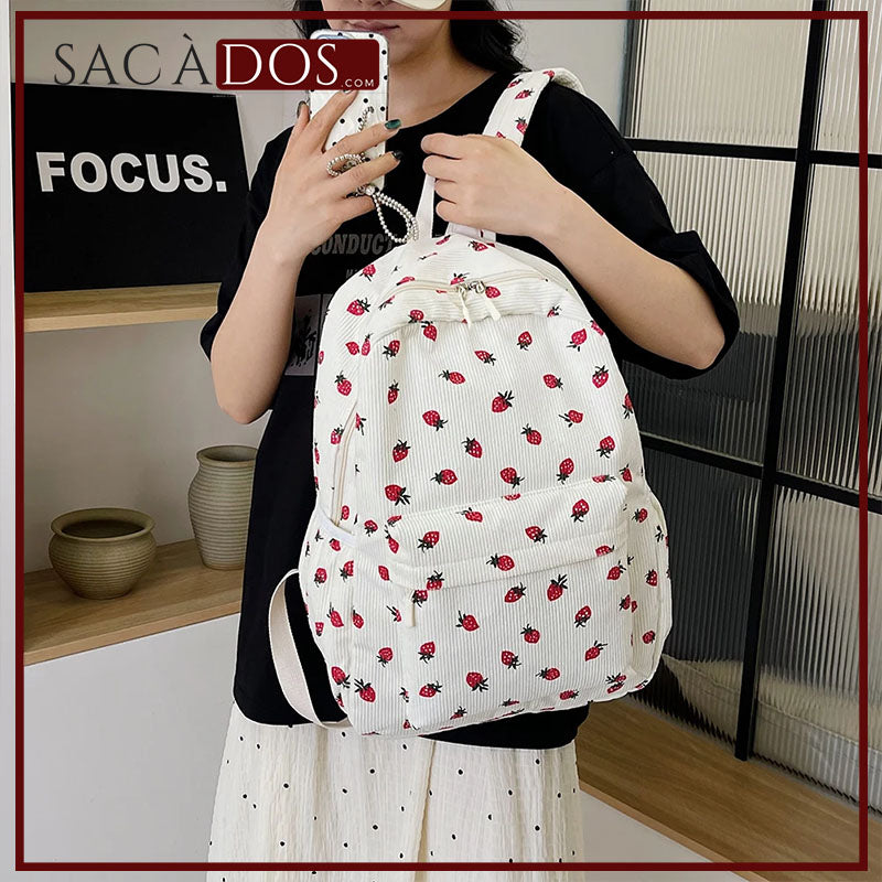 Le Sac Ă Dos Fraise est lâaccessoire parfait pour celles qui recherchent un design original et une touche de fraĂźcheur. FabriquĂ© en velours cĂŽtelĂ© doux, il allie style, confort et grande capacitĂ©. Que ce soit pour les cours, les sorties ou les voyages, ce sac est un vĂ©ritable indispensable au quotidien !